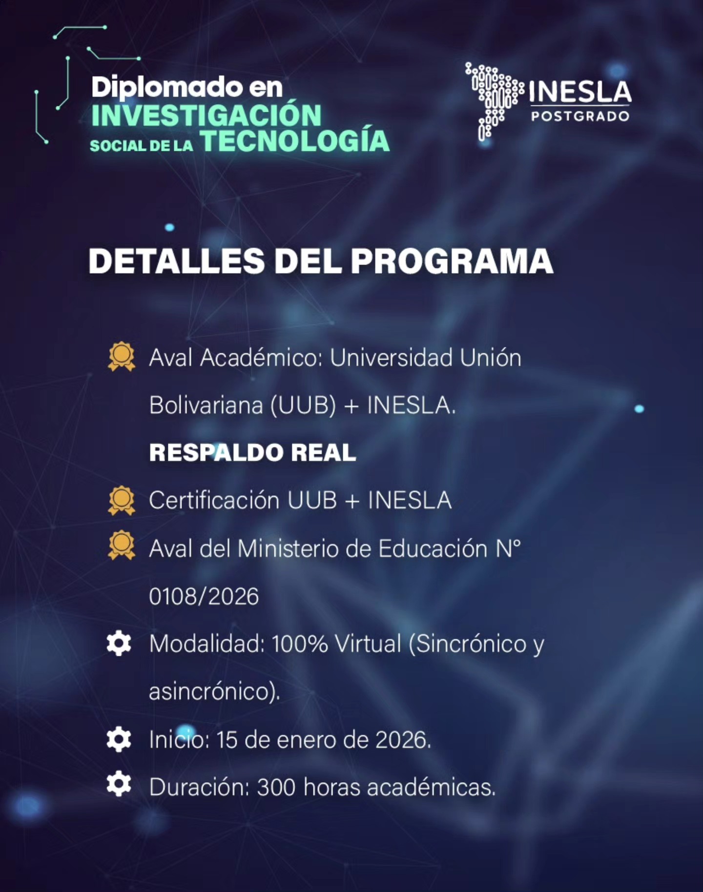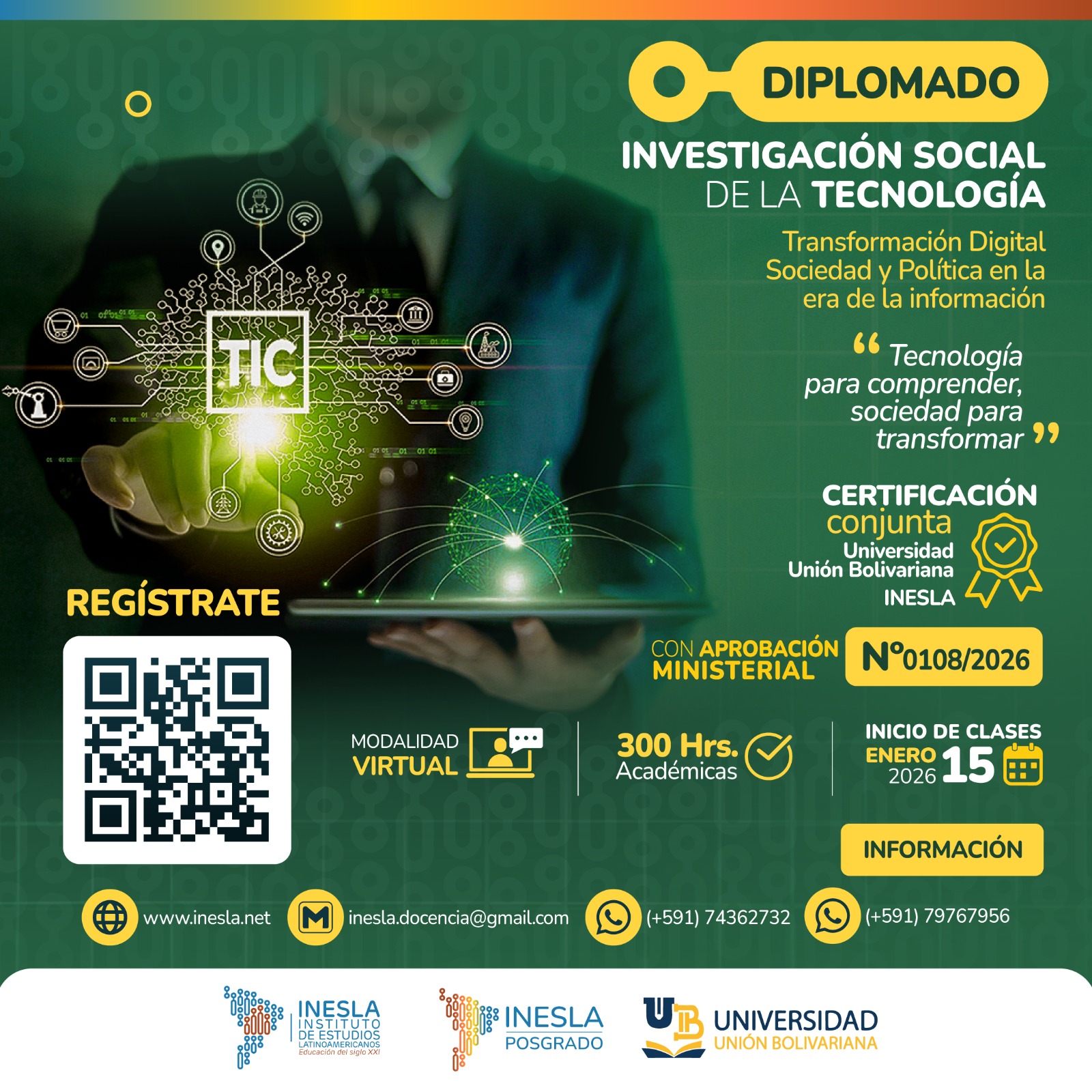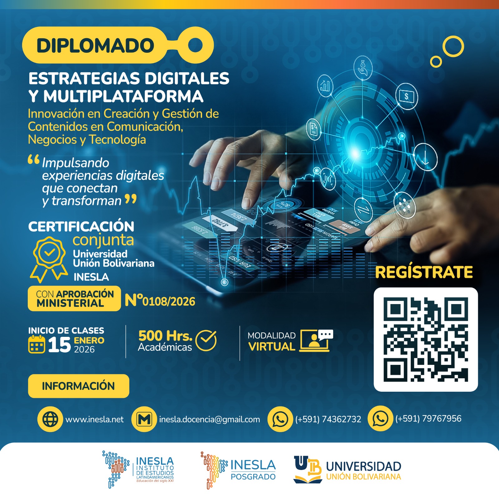 El Instituto de Estudios Latinoamericanos (INESLA), en colaboración con la Universidad Unión Bolivariana (UUB), te invita a formar parte de su exclusiva oferta de Diplomados. Programas 100% virtuales con Certificación Nacional (avalada por el Ministerio de Educación de Bolivia).