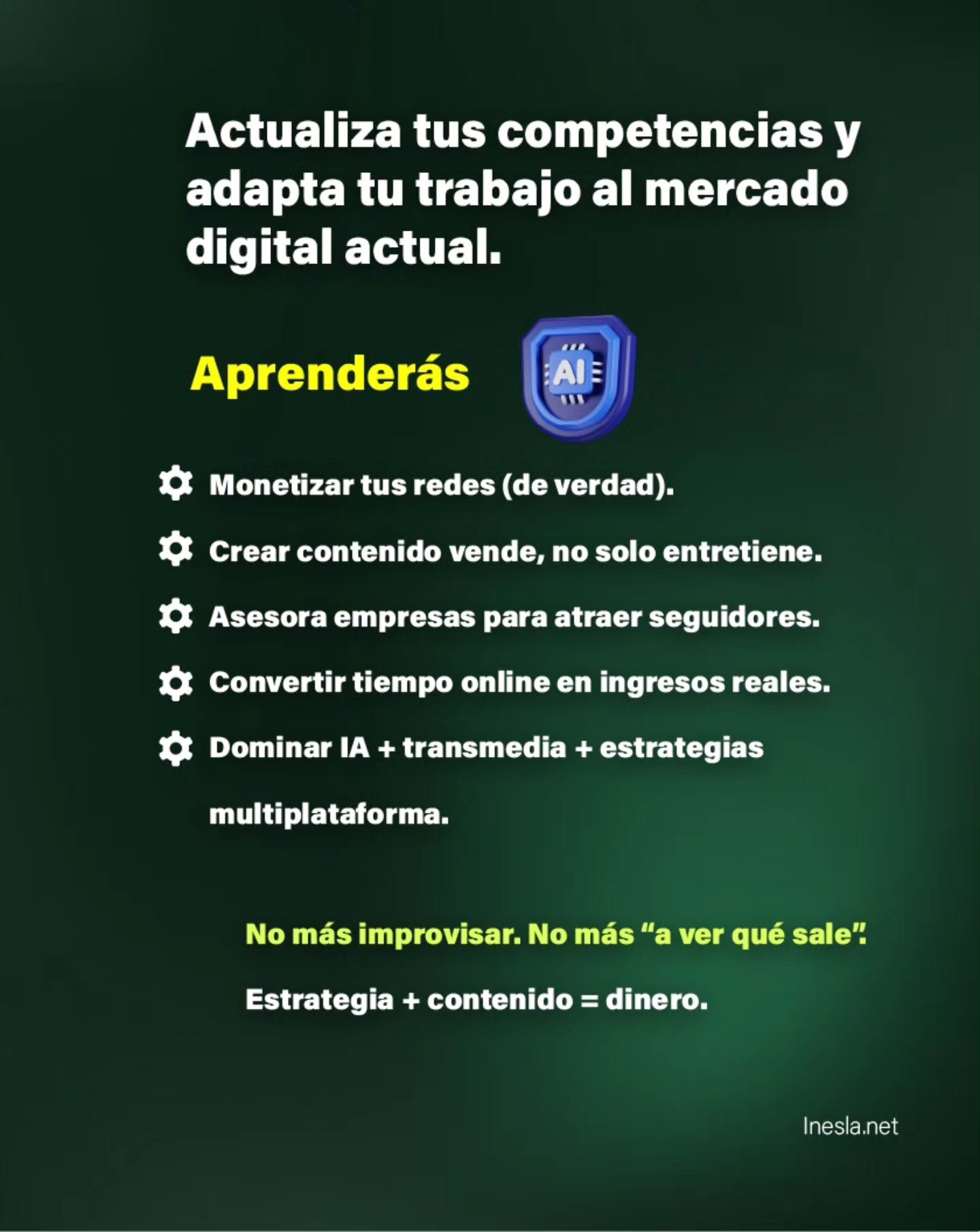 Periodismo digital, narrativa Transmedia, fact-checking (verificación), monetización de contenidos y uso estratégico de IA.